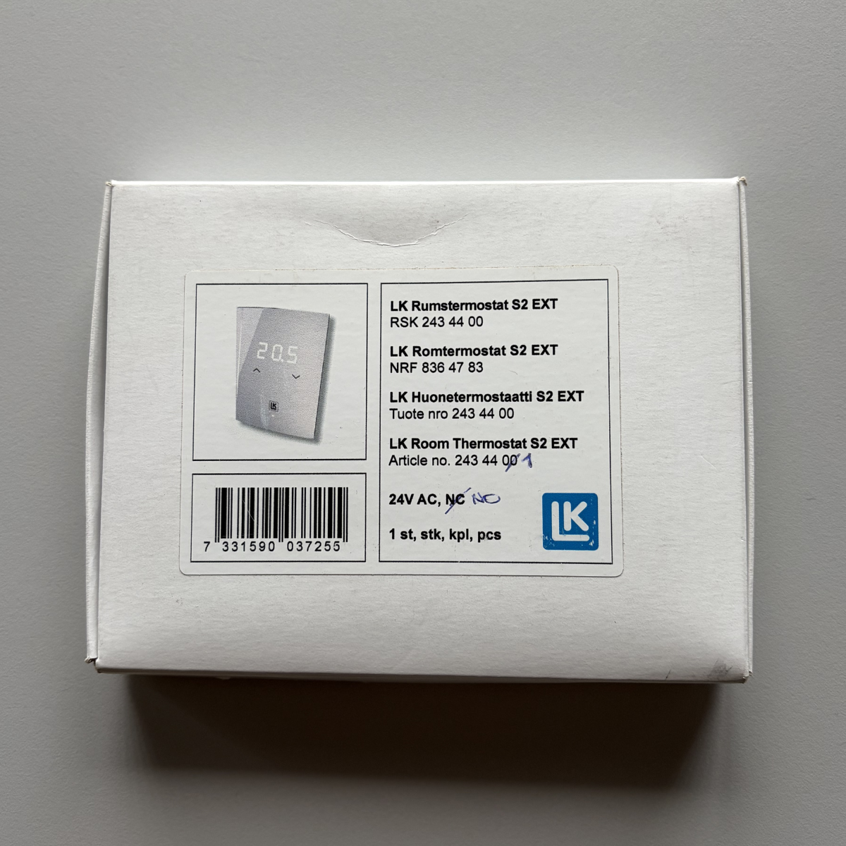 Ruumitermostaat S2 EXT LK Systems 24V NO 5-45°C valge