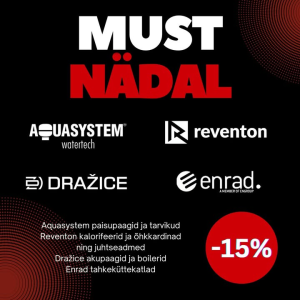 Must nädal on kohal! Ainult sel nädalal suurepärased allahindlused valitud kütte- ja veesüsteemide brändidele. Allahindlus kehtib ainult laos olevatele toodetele! Tootevalik: https://www.cerbos.ee/et/brandid